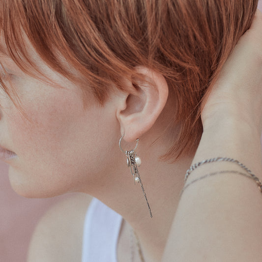 SILVER SEED, PEARL & CHAIN HOOP EARRINGSRegular price $152.00 USDRegular priceUnit price per-