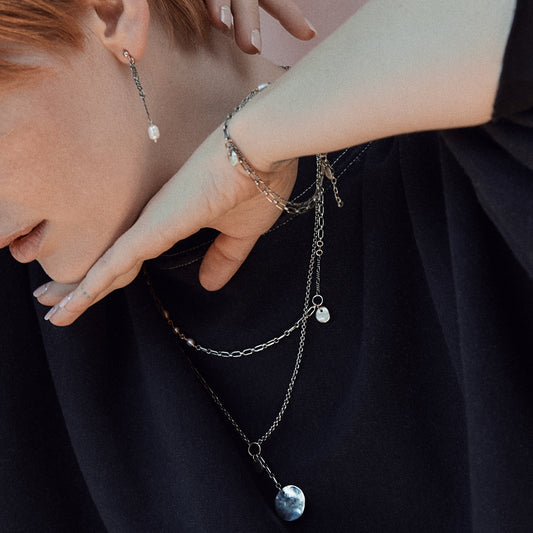 SILVER DOUBLE-CHAIN ROCK & PEARL BRACELETRegular price $130.00 USDRegular priceUnit price per-