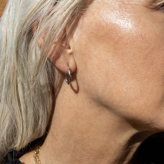 MELTED SILVER HOOP EARRINGS WITH PEARL