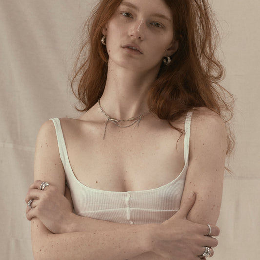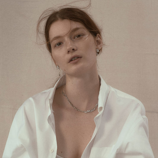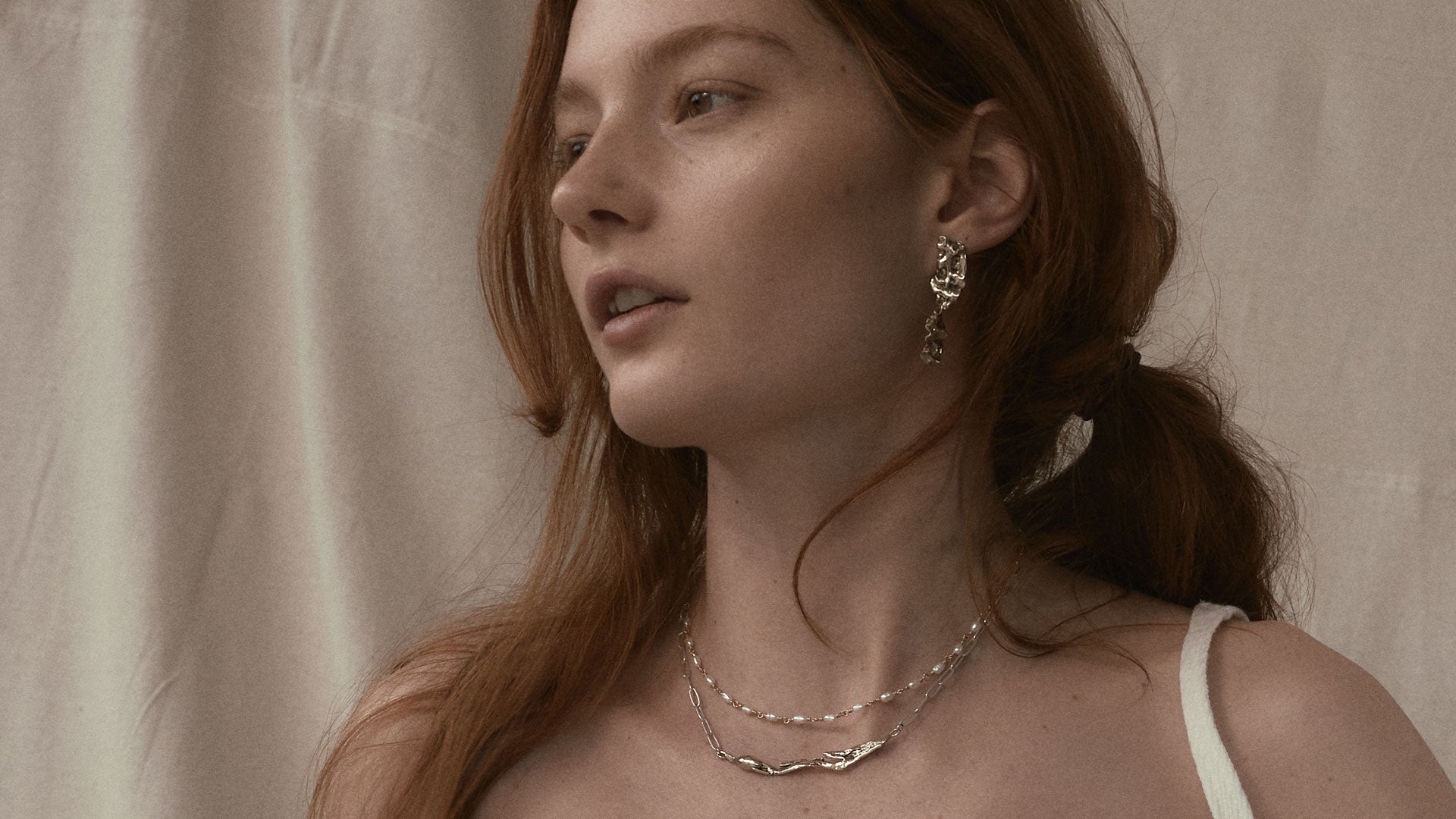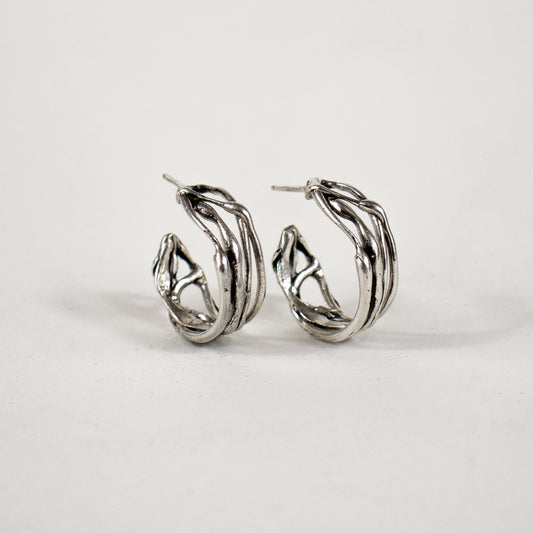 SILVER DOUBLE-WAVE SEAWEED STUD EARRINGS