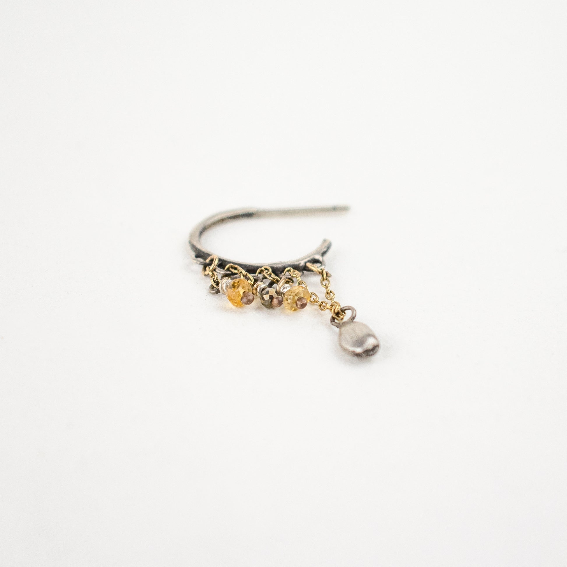 Solid reclaimed sterling silver seed and hoops threaded with gold-filled chain hand-beaded with citrine, labradorite and pyrite handmade and finished in our Catskills store-studio and available as singles to mix-and-match.