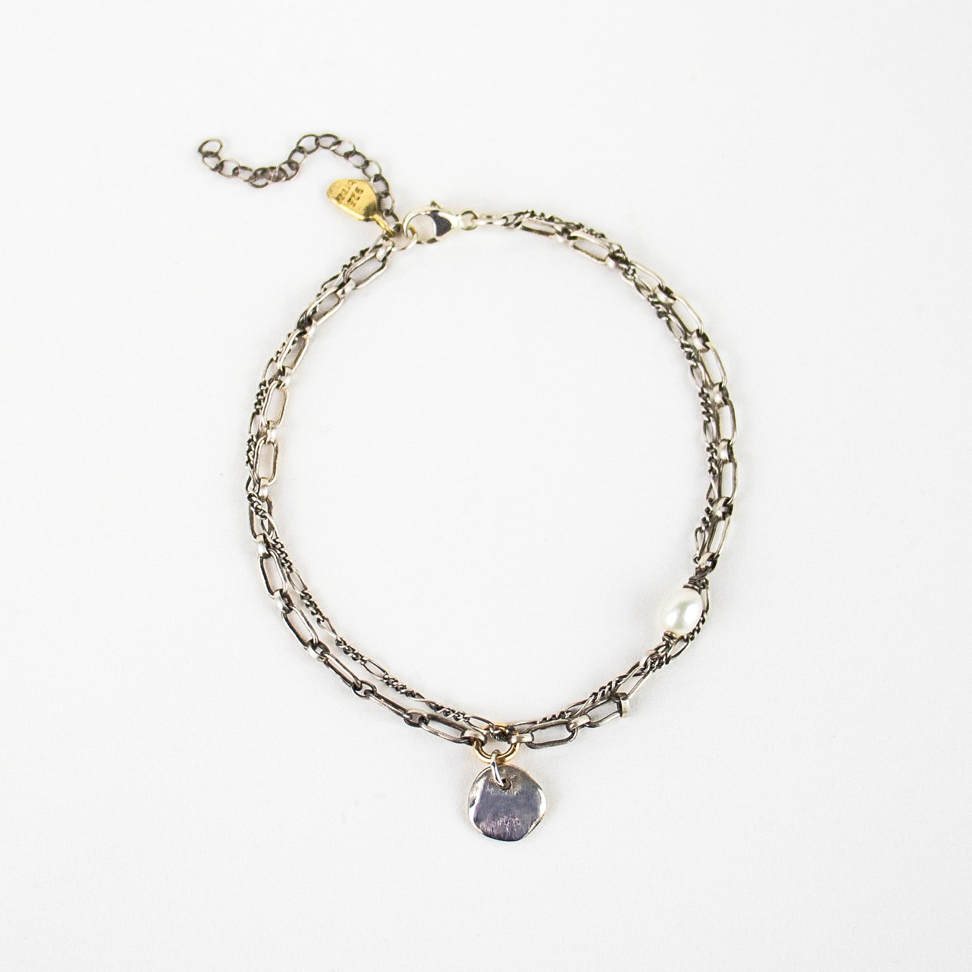 SILVER DOUBLE-CHAIN ROCK & PEARL BRACELET