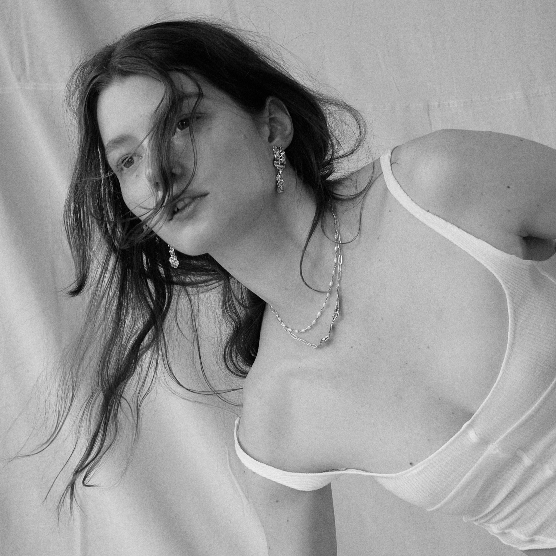 Sterling silver oxidizes naturally over time. Avoid submerging in water and keep clean with a polishing cloth.